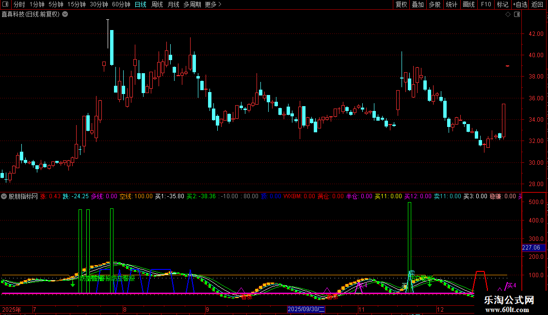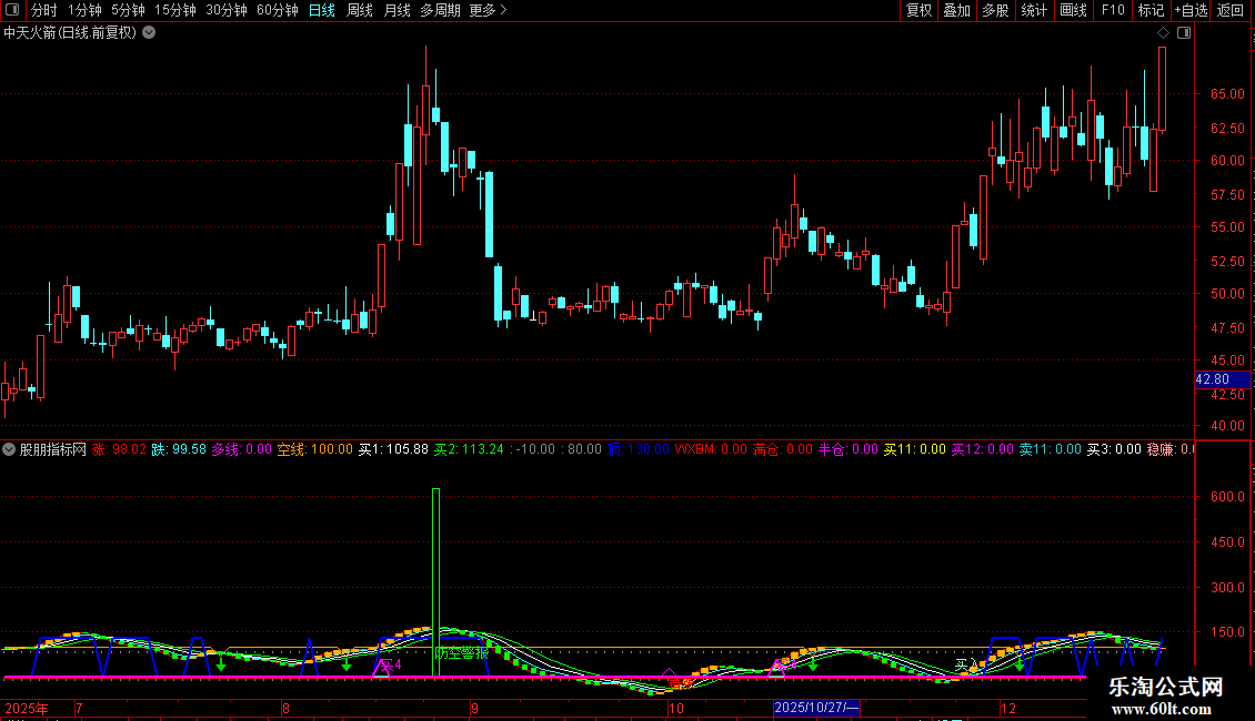 空线:IF(CROSS(跌,80),70,100),COLOR0099FF,LINETHICK1;