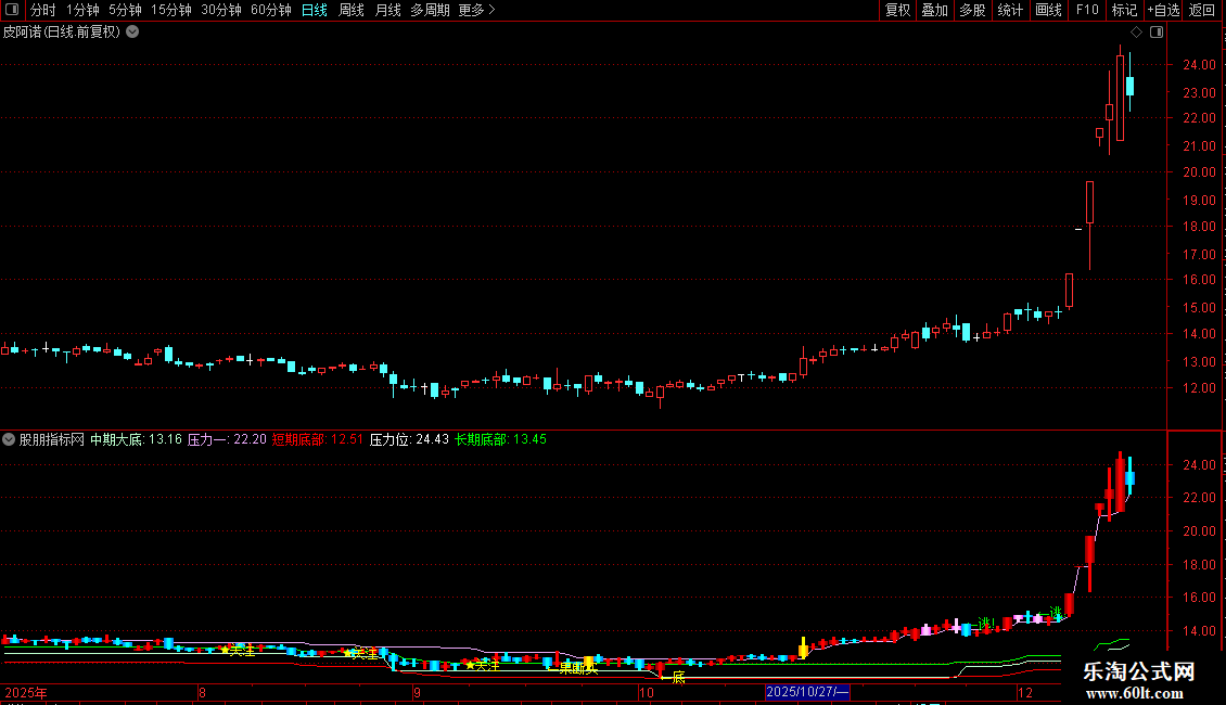 压力位:IF(CROSS(D24,D),HIGH,L),POINTDOT,COLORFFFFFF;