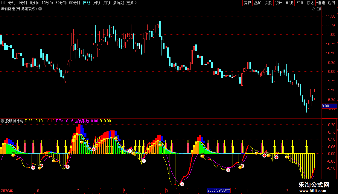 STICKLINE(crOSS(MA(A,1),G),0.05,0,4,1),COLORYELLOW,LINETHICK2;{选股信号:结合线下DIFF看}