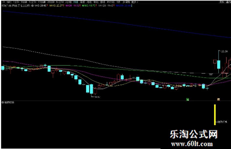 强势趋势:=(VAR9 AND VOL>REF(V,1)*2.1 AND C>REF(C,1)AND CLOSE>VAR1 AND CLOSE>VAR2 AND CLOSE>VAR3 AND CLOSE>VAR4 AND VAR7>=REF(VAR7,1)*2.1),COLORFFFF00;