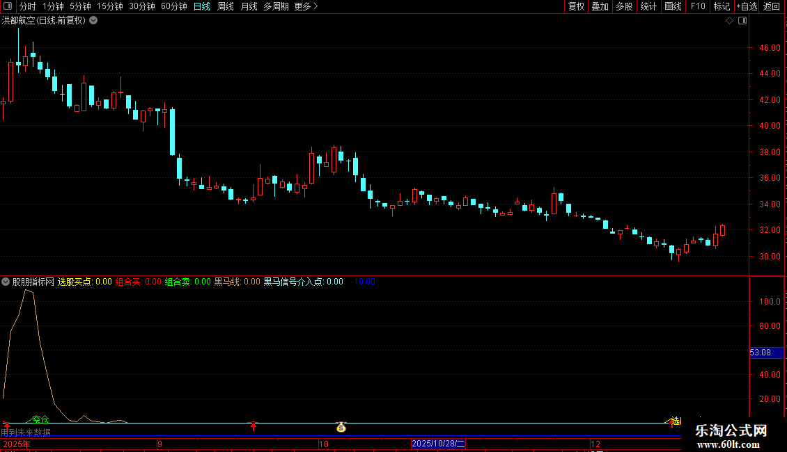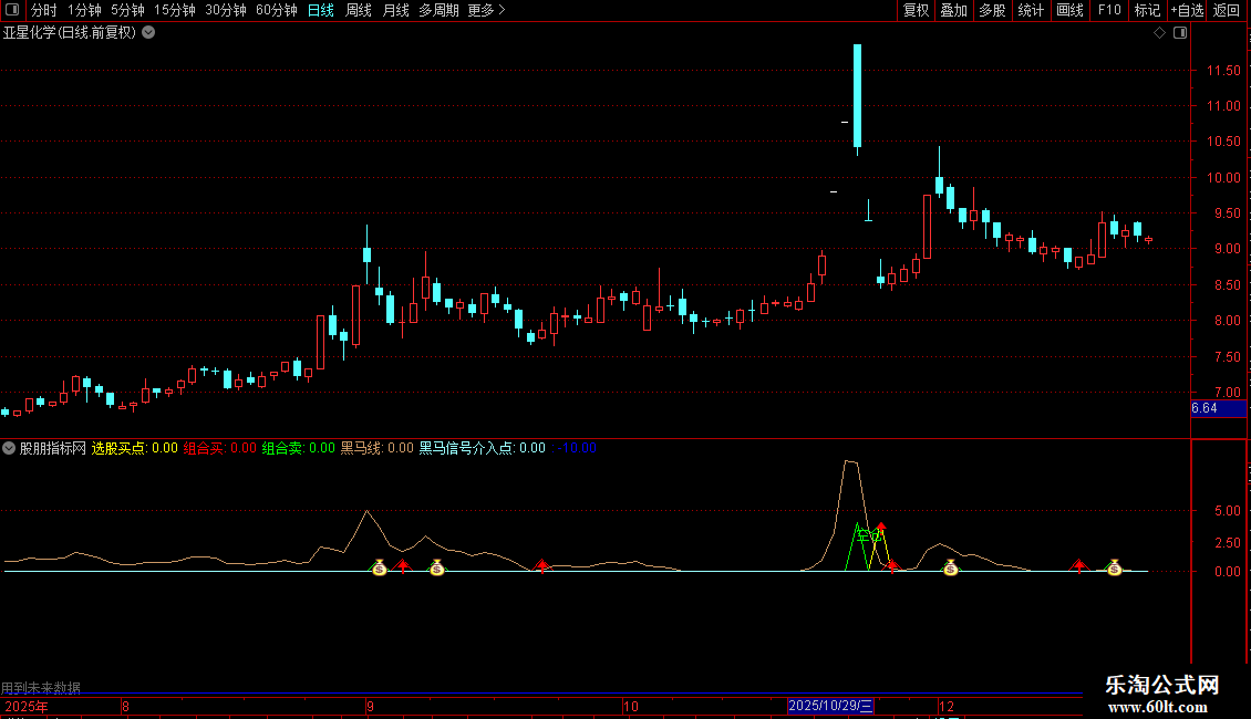 DRAWTEXT(黑马信号介入点>0,4.5,'●我的黑马介入点'), , COLORRED;