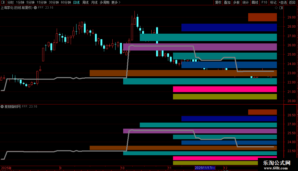 STICKLINE(CEILING(DA*L4/SS)*3>=CURRBARSCOUNT,HI/POW(GZ,3)*99/100,HI/POW(GZ,4),9,0),COLOR883D88,LINETHICK3;