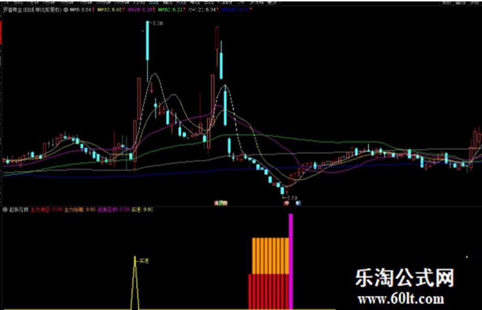 当满足条件主力抢筹时,在0和60位置之间画柱状线,宽度为3.0,0不为0则画空心柱.COLOR880088,COLOR0099FF