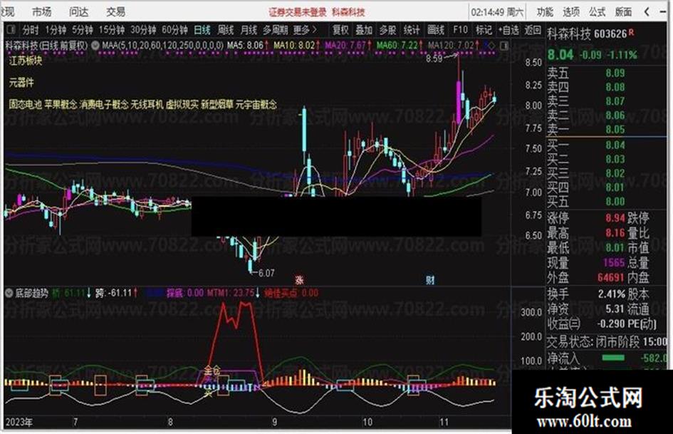 绝佳买点:IF(C=C,MA(IF(LOW<=VARF10,(VARFF+VARF11*2)/2,0),3),100000000)/(200),COLORRED,LINETHICK2;