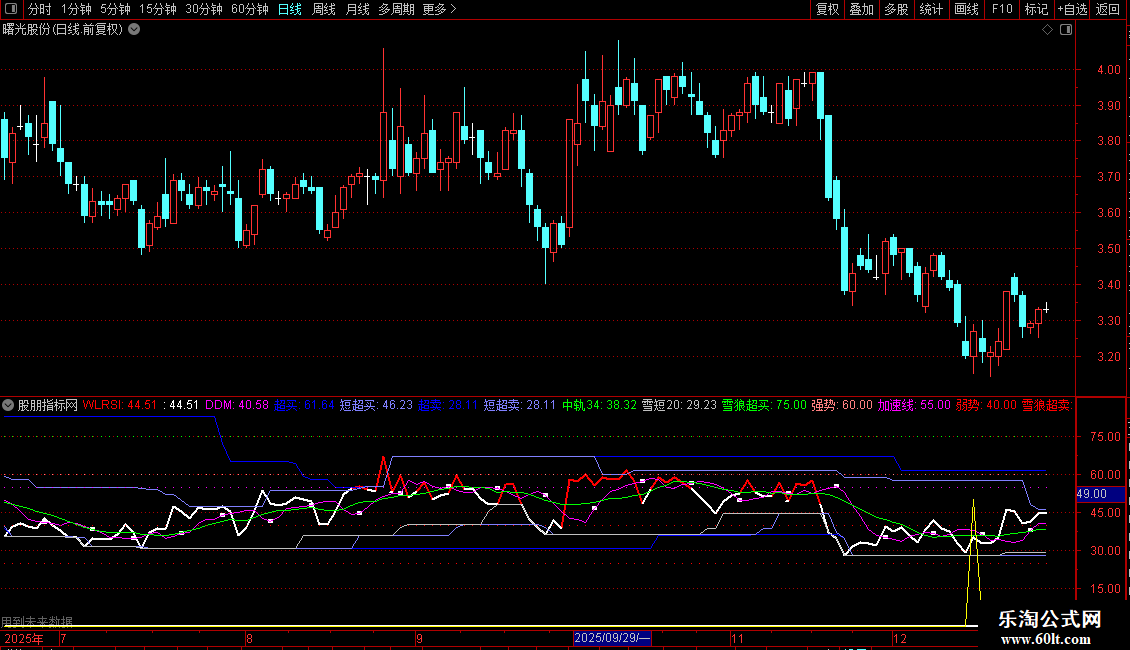 中轨34:MA(WLRSI,M),COLORGREEN;