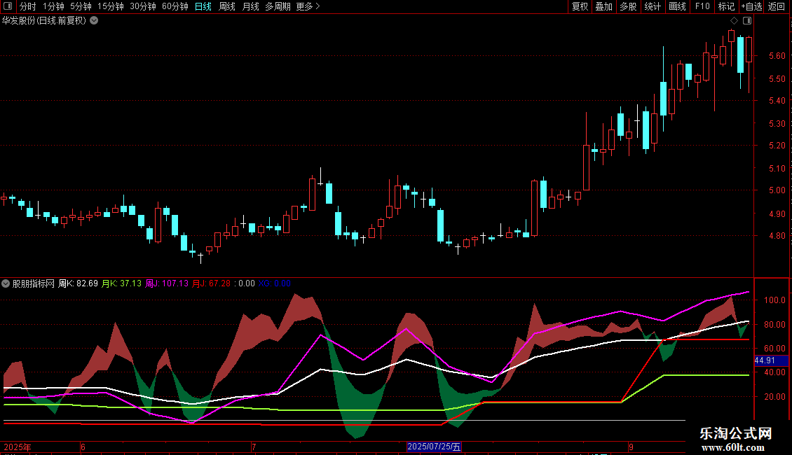 周K:MA("KDJ.K#WEEK"(N,M1,M2) ,5),LINETHICK2,COLORWHITE;