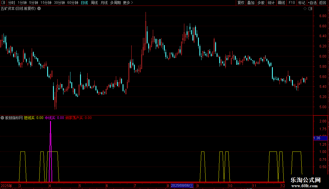 中线买:IF(绝佳买点>10000 AND 绝佳买点>20000,2,0),COLORFF00FF,LINETHICK2;