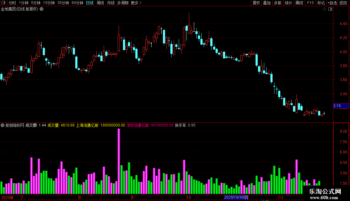 换手率:IF(上海流通亿股,V/DAPAN/100,IF(深圳流通亿股,V/DAPAN/100,DRAWNULL))NODRAW;
