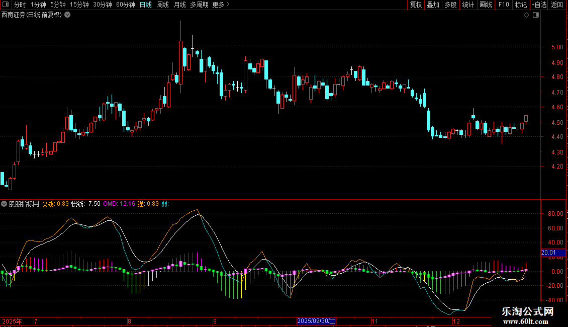 OMD:(快线-2*ADMA+慢线)/2, COLORSTICK;