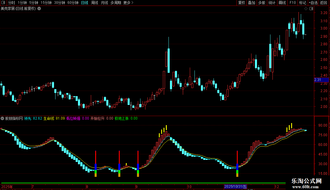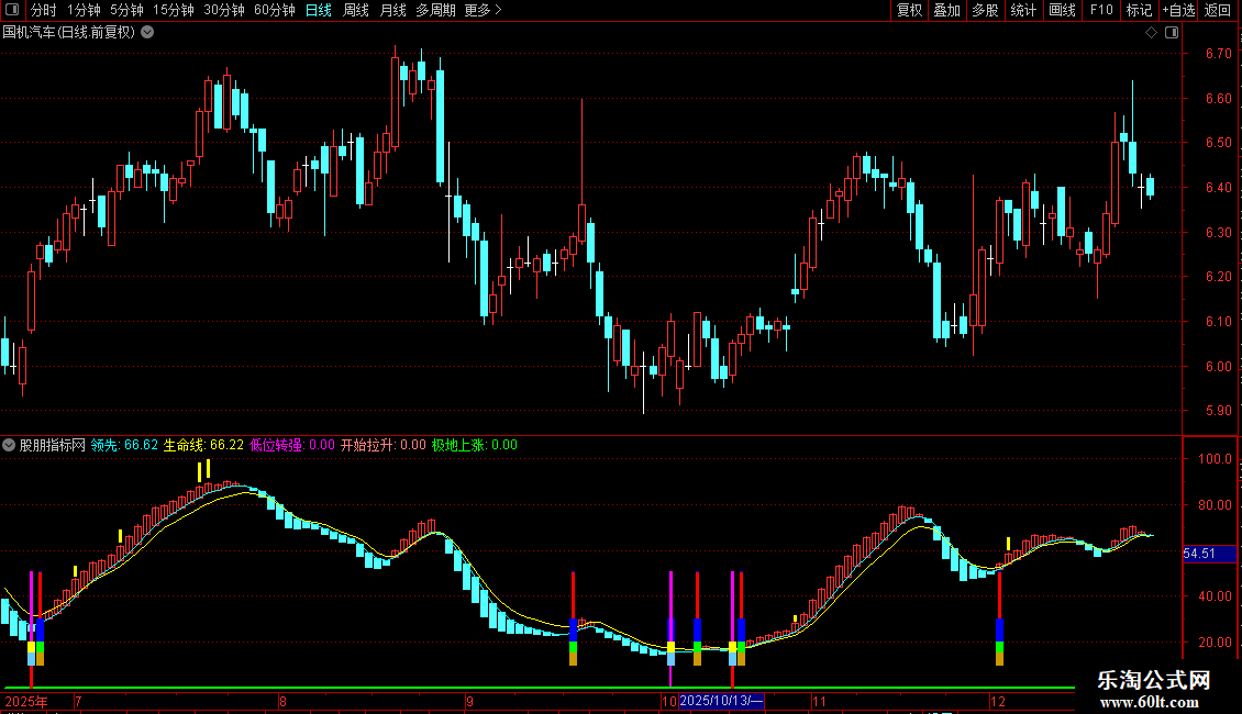极地上涨:IF(A6,领先,0),COLORGREEN,LINETHICK2;