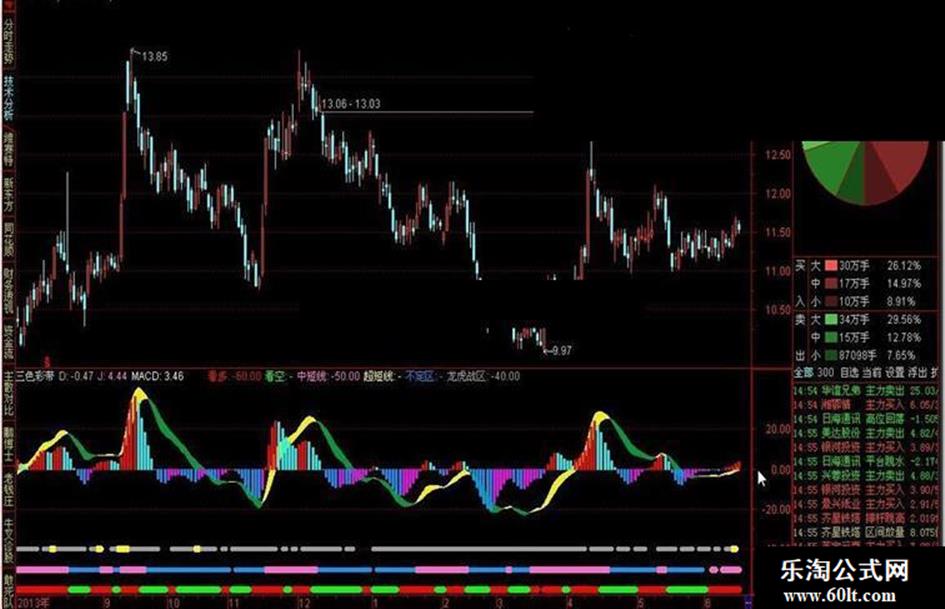 中短线:IF(J>D,-50,DRAWNULL),LINETHICK7,COLORCC66FF;