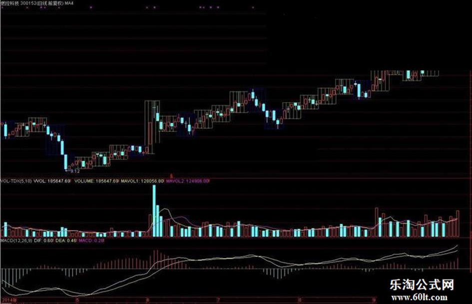 3、在日线图上,显示周线框,同时又不能影响到日线的状况,包括上影线和下影线。有的类似周框图形,不理想看不出原来日线的状况了,显然不够理想。