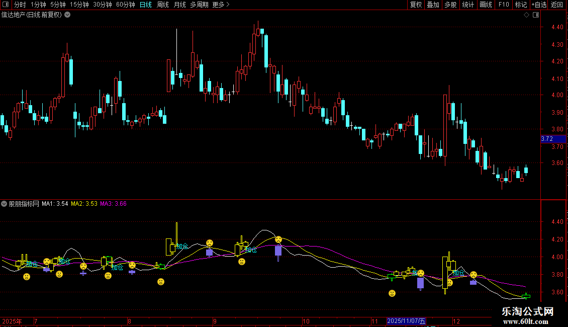DRAWTEXT(COUNT(CLOSE>MA3,3)=3 AND REF(CLOSE,3)<REF( REF(MA3,3),1),LOW,'加仓'),COLORF0F000;