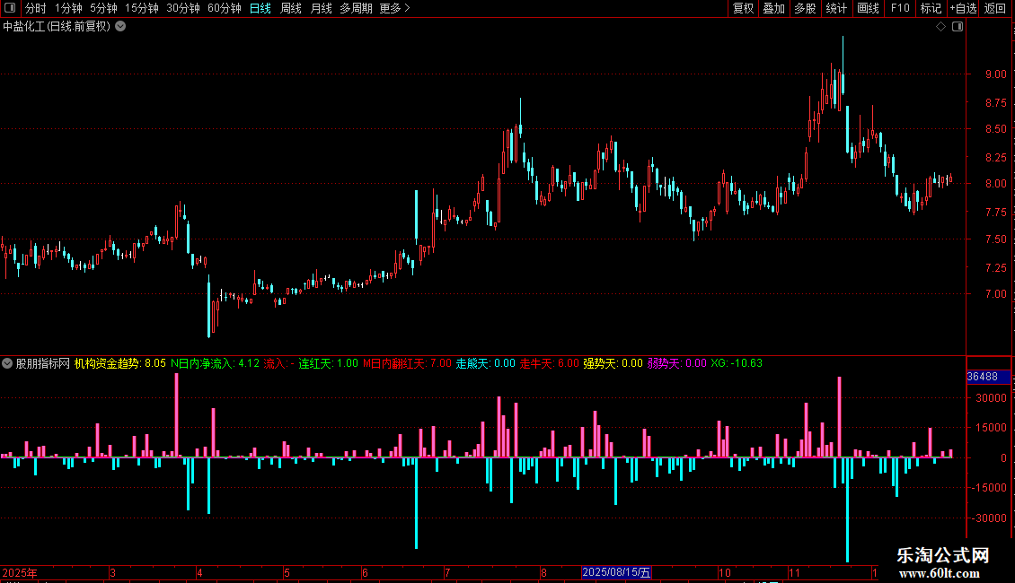 走牛天:BARSLASTCOUNT(N日内净流入>0),COLORRED;