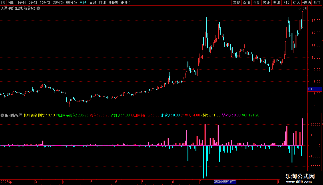 强势天:BARSLASTCOUNT((N日内净流入>REF(N日内净流入,1))>0 AND N日内净流入>0);