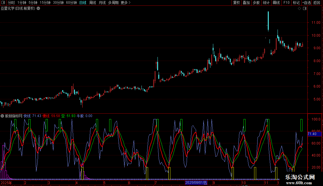 慢线:SMA(快线,M1,1),COLORRED,LINETHICK2;
