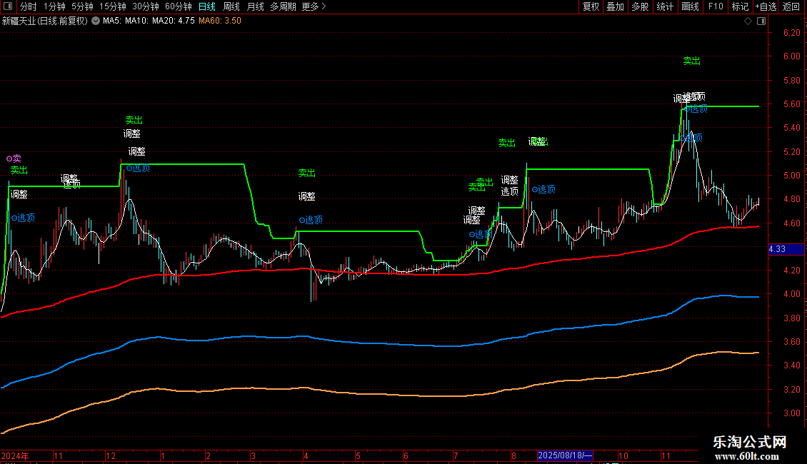 卖出提示包括输出的以下文字信号:调整、卖、卖出、逃、逃顶等。同样是根据股价运行情况决定仓位