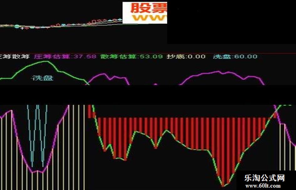 STICKLINE(庄筹估算<散筹估算 AND 散筹估算<60,散筹估算,55,1,0),COLORGREEN;