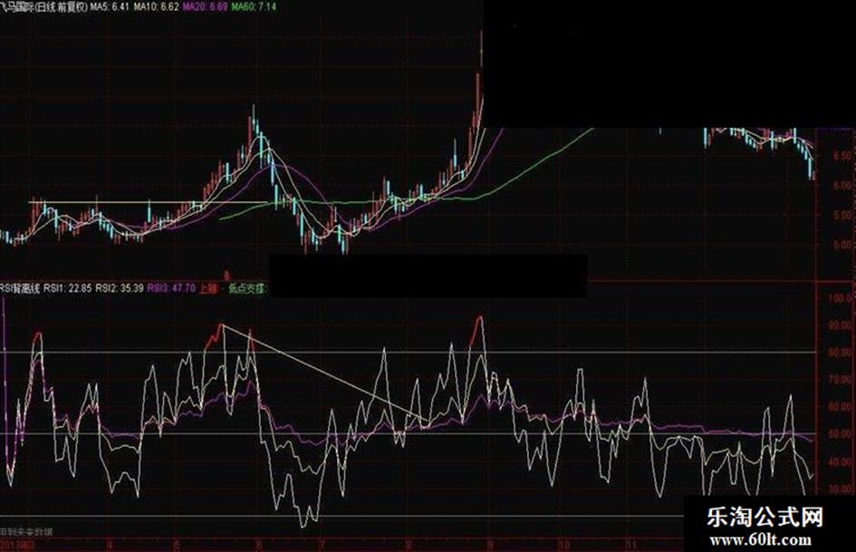 低点支撑2: DRAWLINE(CURRBARSCOUNT=DDCS1,RSI1,ISLASTBAR,REF(RSI1,DDCS1-1),1),COLORMAGENTA,POINTDOT,;
