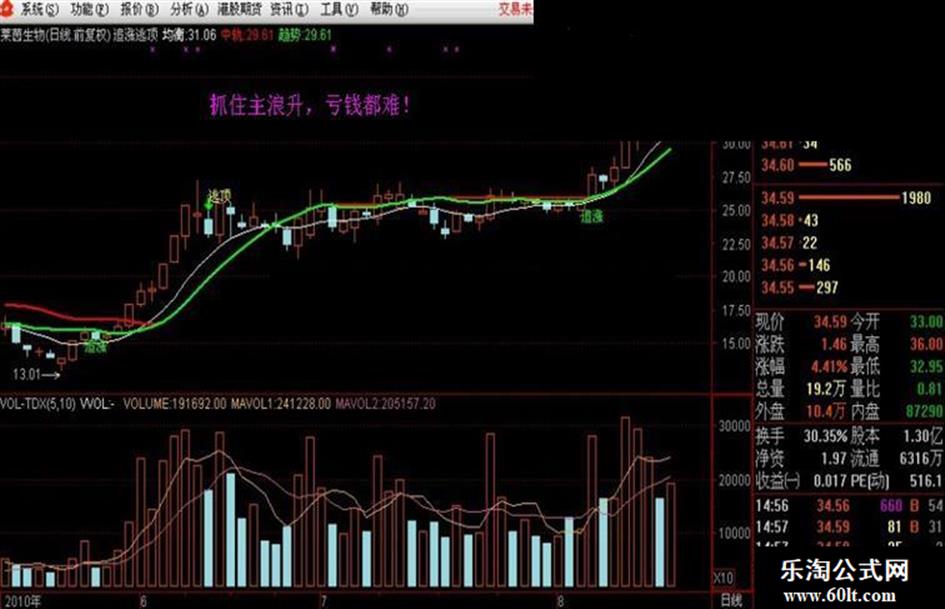 趋势:LLV(MA(H,13),1),COLOR00FF00,LINETHICK2;