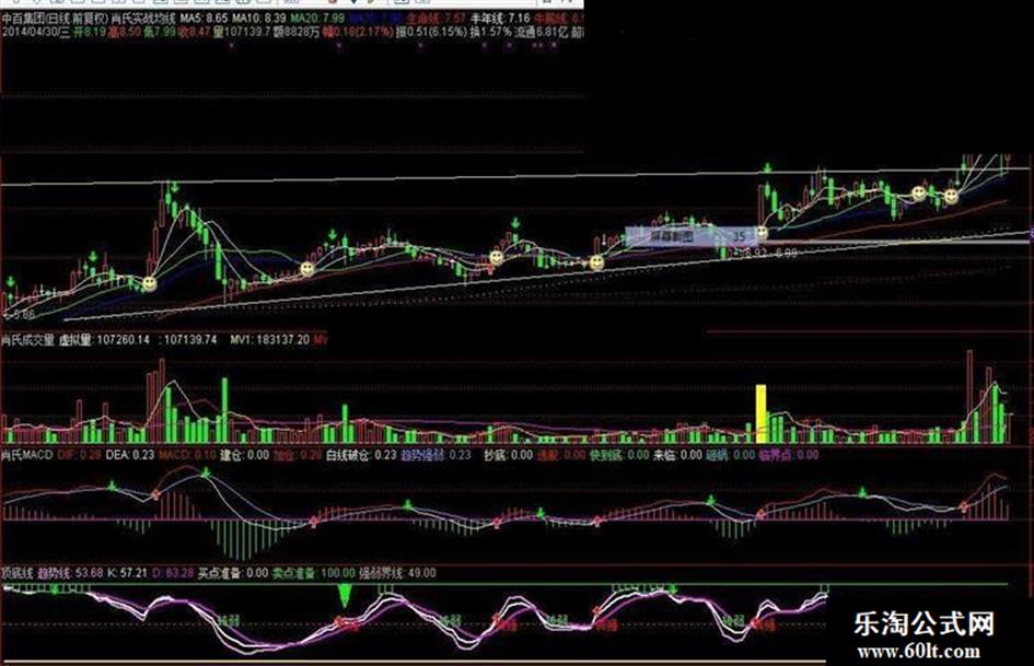 买点准备:IF(趋势线<=10,30,0),LINETHICK2,COLORYELLOW;