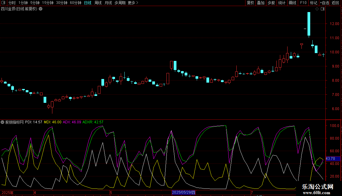 ADX: EXPMEMA(ABS(MDI-PDI)/(MDI+PDI)*100,M);