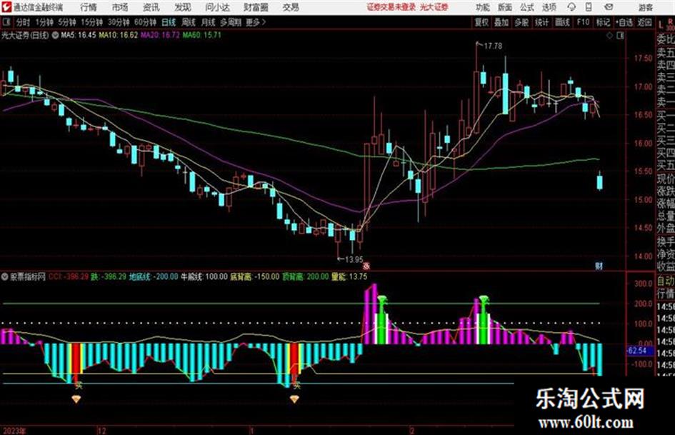弱转强赋值:当满足条件CCI上穿-200ANDCCI>1日前的CCI时,在CCI和0位置之间画柱状线,宽度为2,0不为0则画空心柱.,COLOR00DFDF