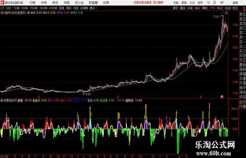 STICKLINE(差值>60 AND VB>0 AND 中期>50,VB,0,1,0),COLORBLUE;
