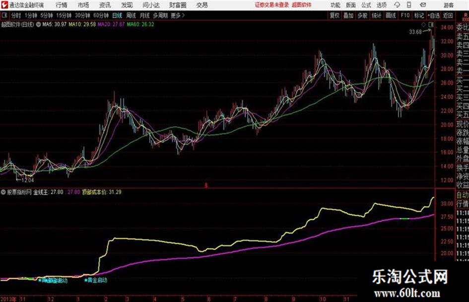 IF((金线王>=REF(金线王,1)),金线王,DRAWNULL),LINETHICK2,COLORMAGENTA;