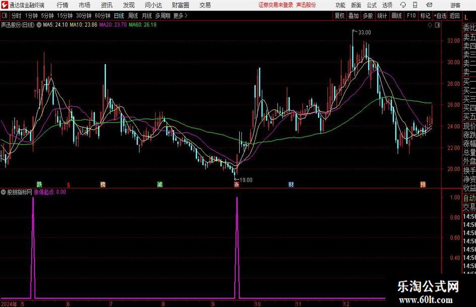 涨停起点:(OPEN<=MA(CLOSE,5) AND OPEN<=MA(CLOSE,10) AND OPEN<=MA(CLOSE,30) AND CLOSE>=MA(CLOSE,5) AND CLOSE>=((SUM(CLOSE*vol*100,28)/SUM(VOL*100,28))*100)/100 AND (VAR2-REF(VAR2,1))>0 AND (VAR1-REF(VAR1,1))>0),COLORMAGENTA,LINETHICK2;