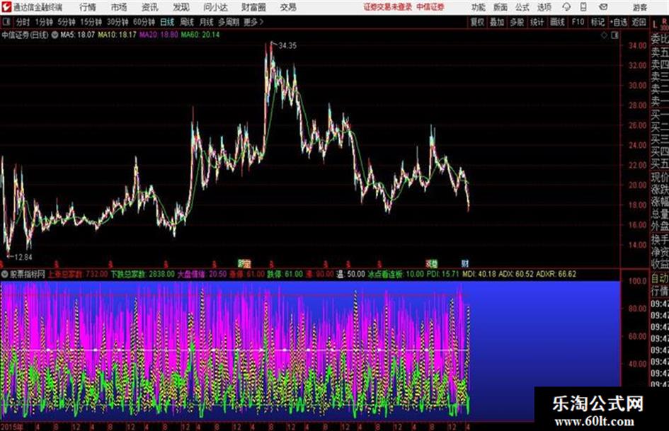 ADX: MA(ABS(MDI-PDI)/(MDI+PDI)*100,M),DOTLINE,COLORYELLOW;
