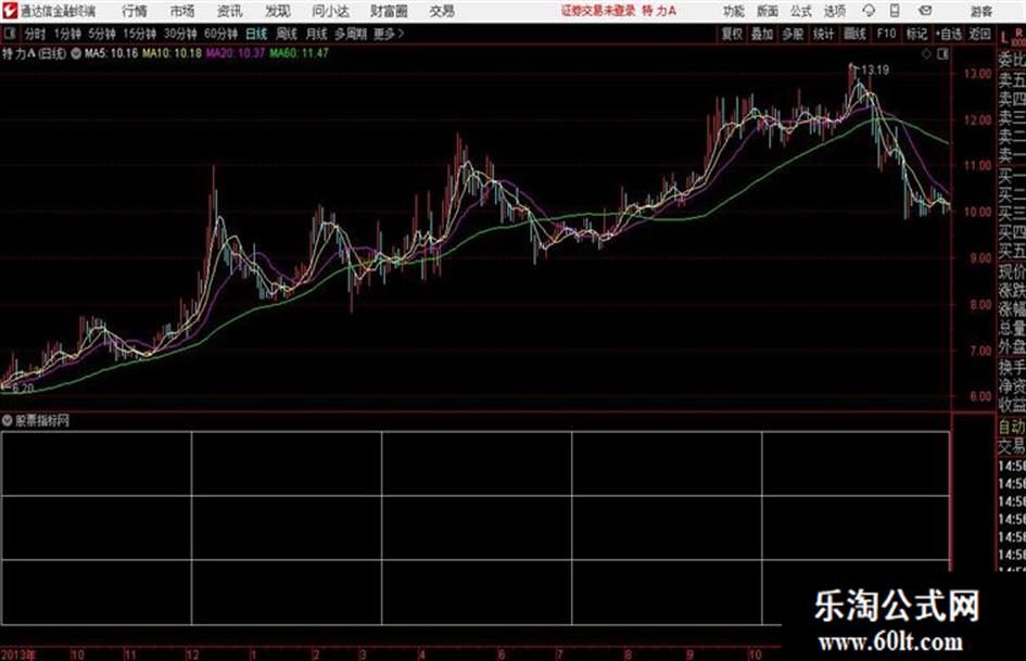 五日底点:=STRCAT(STRCAT('5日底点涨幅:',CON2STR((C-LLV(LOW,5))*100/LLV(LOW,5),1)),'%');