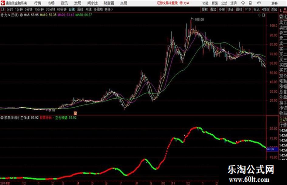 通达信龙门工作线副图指标,红点股票持有,绿点空仓观望。
