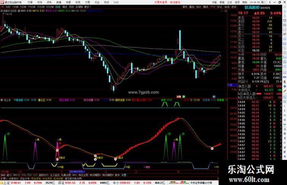 输出底背离:如果MN<-4,返回-11,否则返回0,COLORA67D3D,线宽为3
