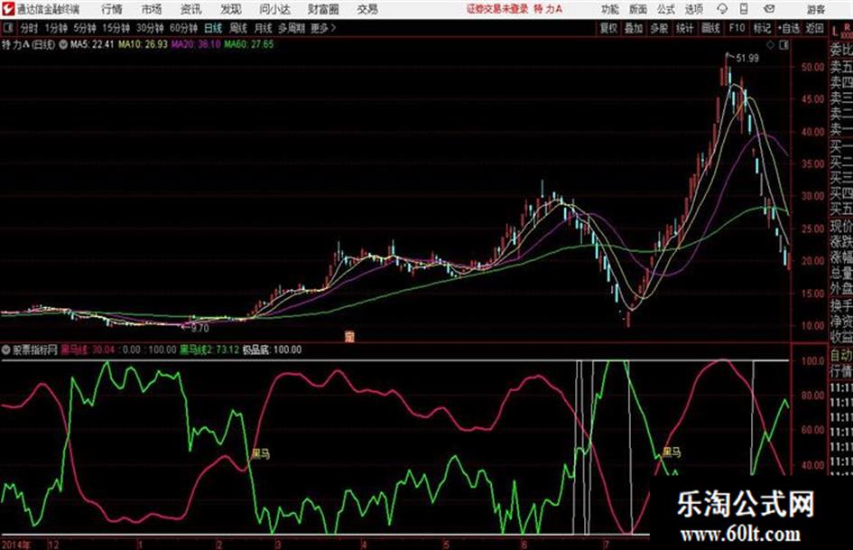 黑马线:EMA(VAR11,5), LINETHICK2,COLOR6600FF;