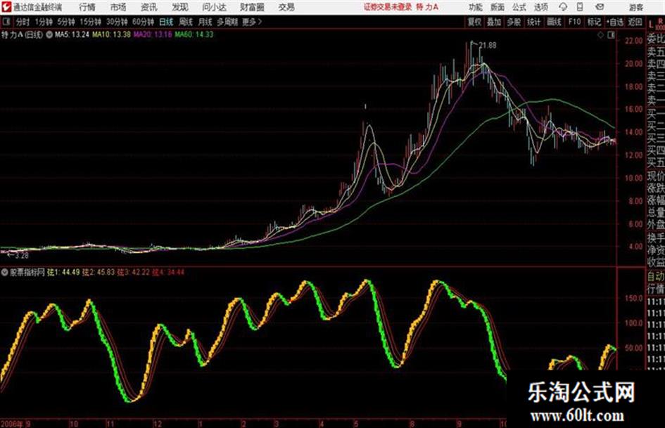 多线:=IFF(CROSS(弦1,弦2) AND 弦2<-10,30,0),LINETHICK1,COLORFF00FF;