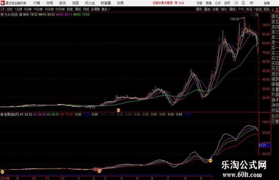 A3:(EMA(AA,13)+MA(AA,26)+MA(AA,52))/3,COLOR00FF00;