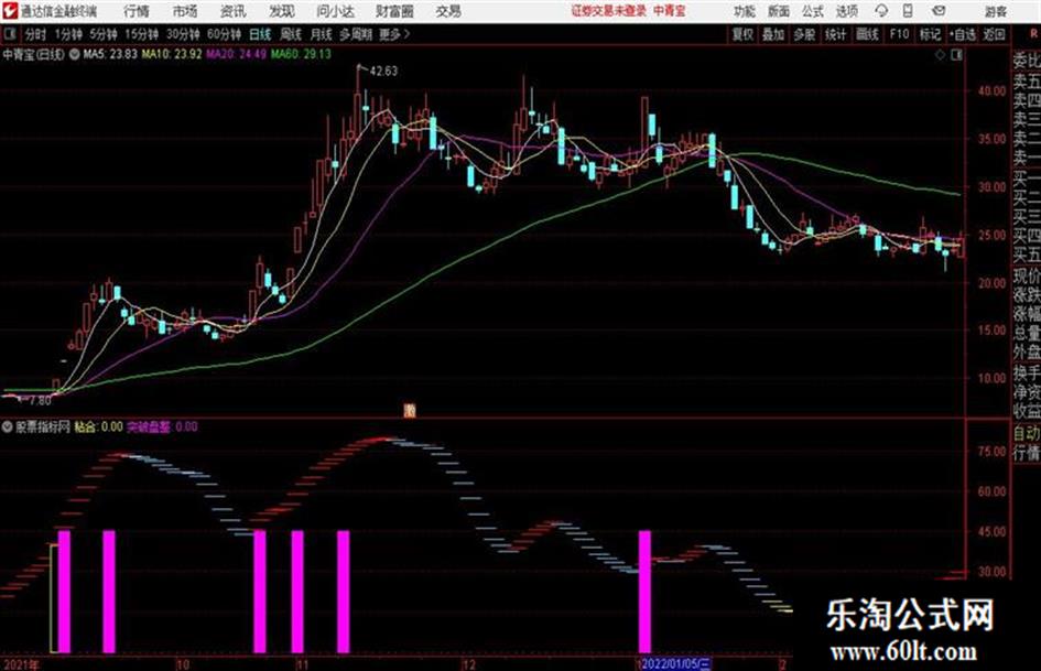 出现粉色或者黄柱状线为买入信号,