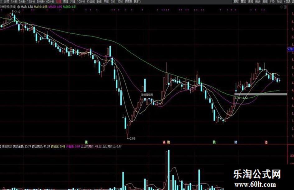 竞价金额:IF(ISLASTBAR AND PERIOD=5,DYNAINFO(15)/10000,GPJYVALUE(25,1,0)*O/100),VOLSTICK;