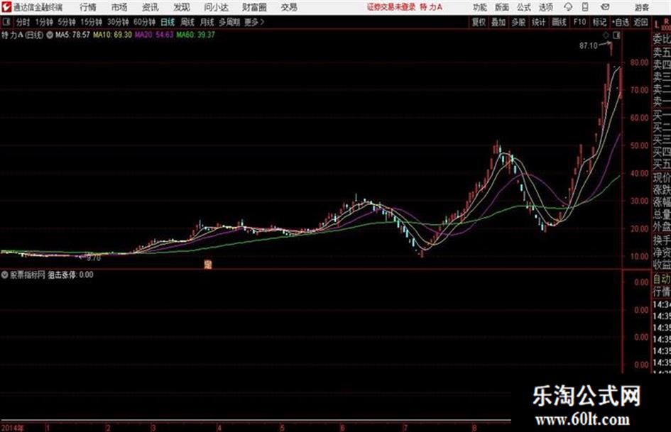 通达信捕捉牛股利器指标 黄紫信号重叠出现钱袋介入 源码附图