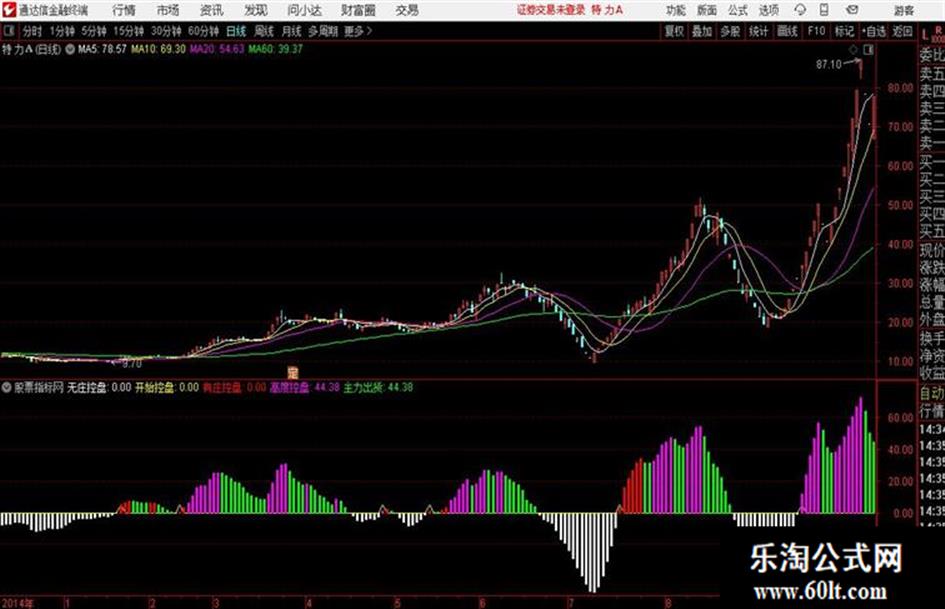 高度控盘:IF(VAR2>50 AND COST(85)<CLOSE AND 控盘>0,控盘,0),COLORFF00FF,NODRAW;