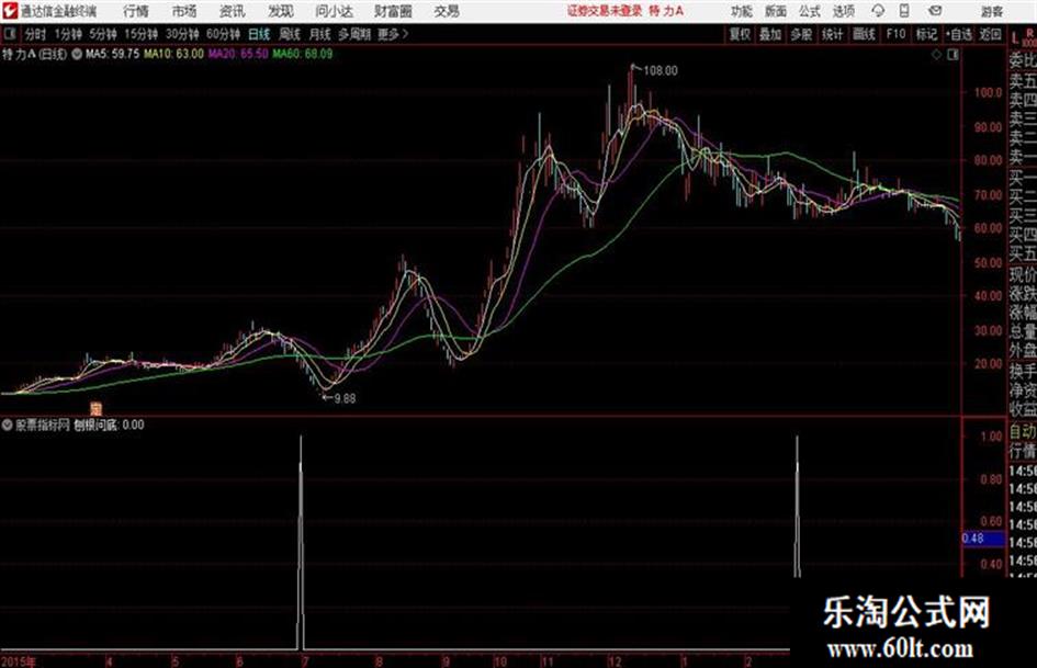 刨1:=IF(CROSS(0.9,1/VOL*1000>0.01 AND "KDJ.J"<0),1,0);