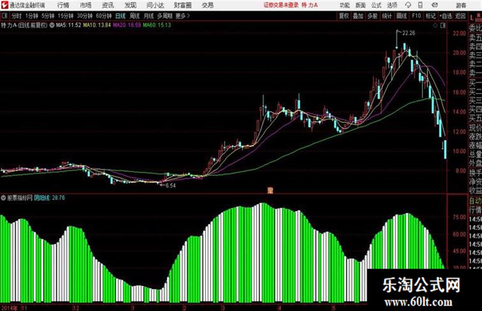 弱势反弹:STICKLINE(资金趋势<阴阳线 AND 资金趋势>(REF(资金趋势*0.95,1)),资金趋势,阴阳线,2,0),COLORWHITE;