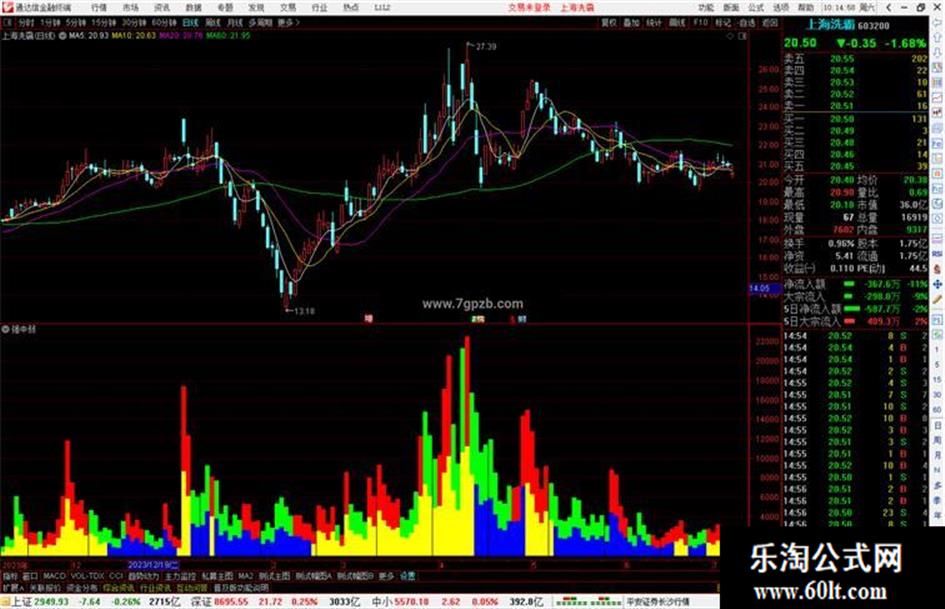 {指标介绍:此指标不能预测,只能在交易结束后看当天个股强弱。红黄强,蓝绿弱,黄绿红蓝中。由弱转中应考虑进,由中转强应考虑加,反之则出。在个股短时波动较大时,会不准,可能直接由强变弱,也可能直接由弱变强。}
