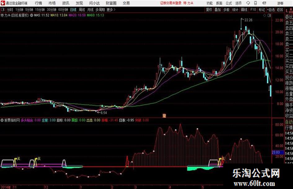 跟踪:IF(目标,(BARSLAST(CROSS(目标,0))+1)*8,0),COLOR00FF00{,POINTDOT},LINETHICK2;