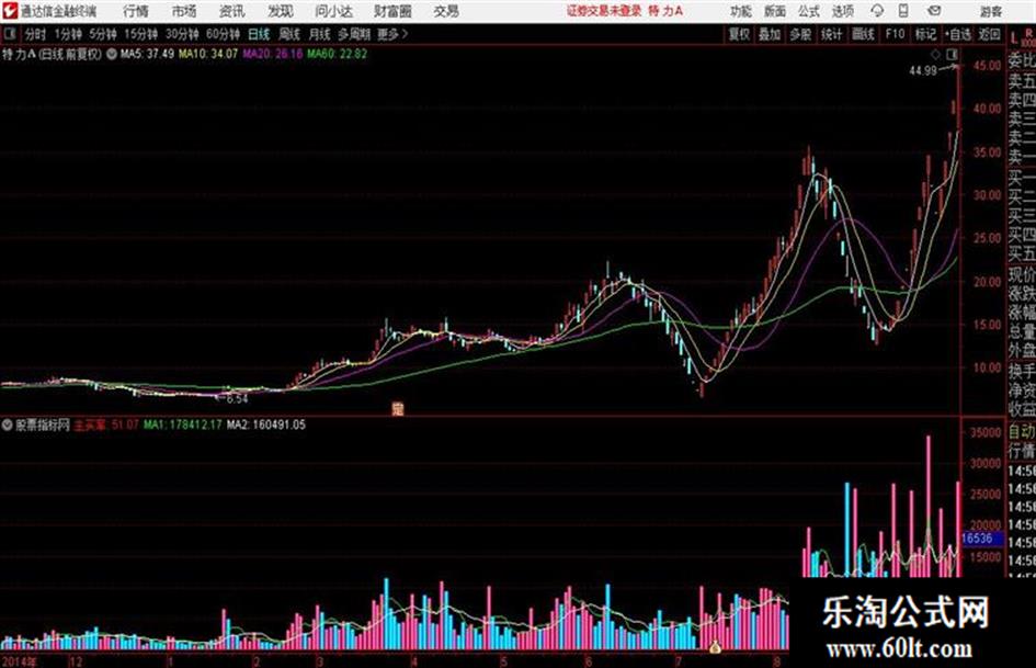 主动买盘赋值:如果收阳线,返回VAR1*(最高价-最低价),否则返回如果收阴线,返回VAR1*((最高价-开盘价)+(收盘价-最低价)),否则返回成交量(手)/2STICK,线宽为2