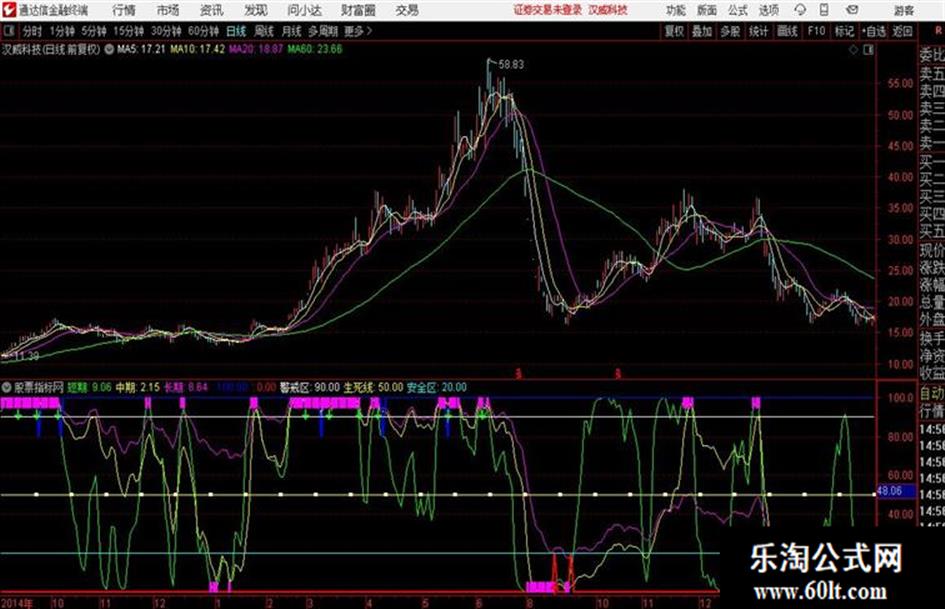 IF(FILTER(中期<REF(中期,1)AND 中期>90 AND BB<REF(BB,1),5),80,100),COLORBLUE,LINETHICK2;