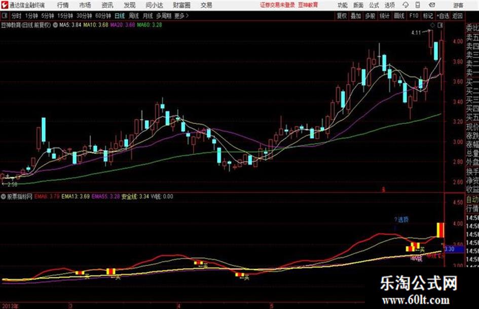 安全线:EMA(CLOSE,60),COLORYELLOW,LINETHICK2;