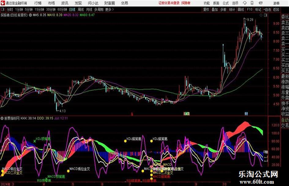 日金叉:=CROSS(日K,日D) AND (日D<40 OR 日D>60);