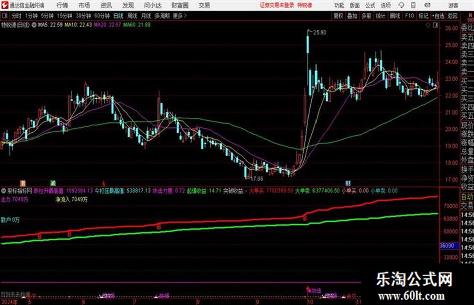 买单总:=SUM(IF(C>REF(C,1),V/5,0),0);